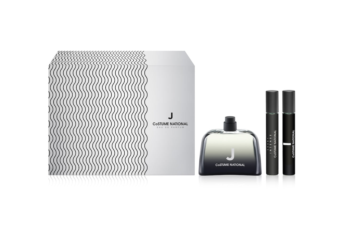 El set se presenta en una elegante caja negra premium reutilizable, complementada con un estuche brillante decorado con un estampado minimalista, al más puro estilo de Costume National Scents.